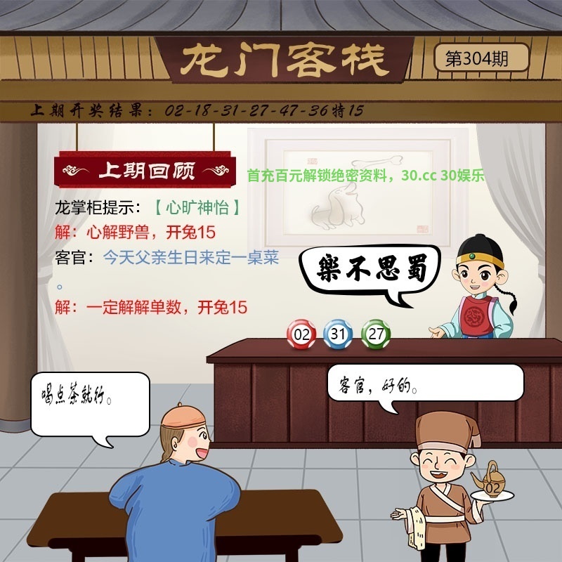 309期今日闲情:【更新】 图解:更新 综合解肖:更新 |