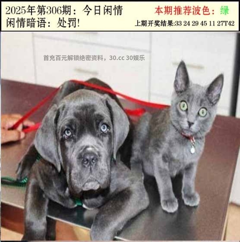 306期今日闲情:【处罚】 图解:图片显示,一个狗狗和猫咪,解出家禽牛羊鸡猪狗马:绿波 综合解肖:牛羊鸡猪狗马 |